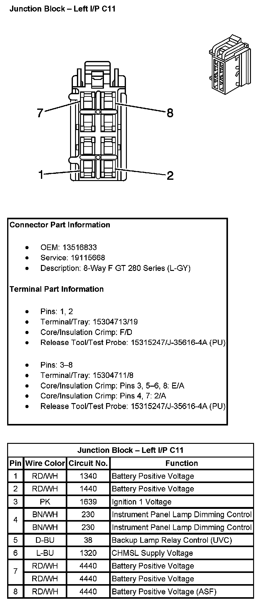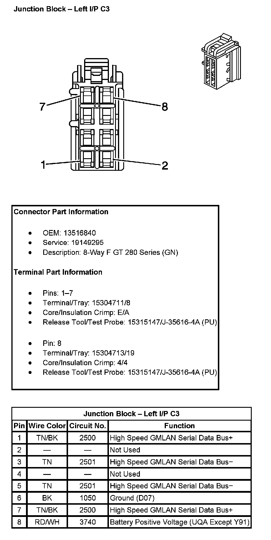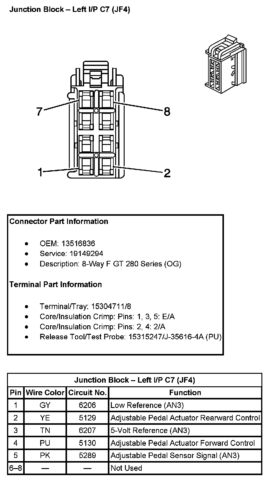 Junction Block - Left I/P C7 (With RPO Code JF4):