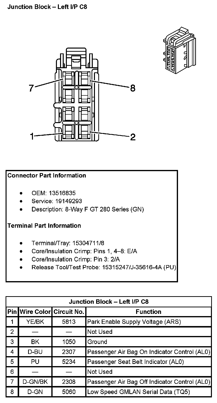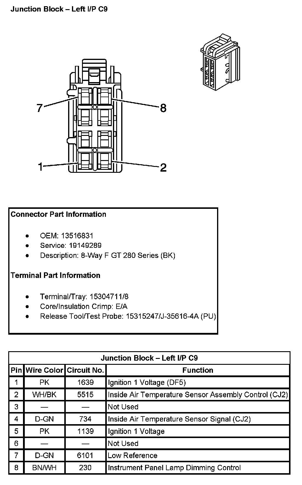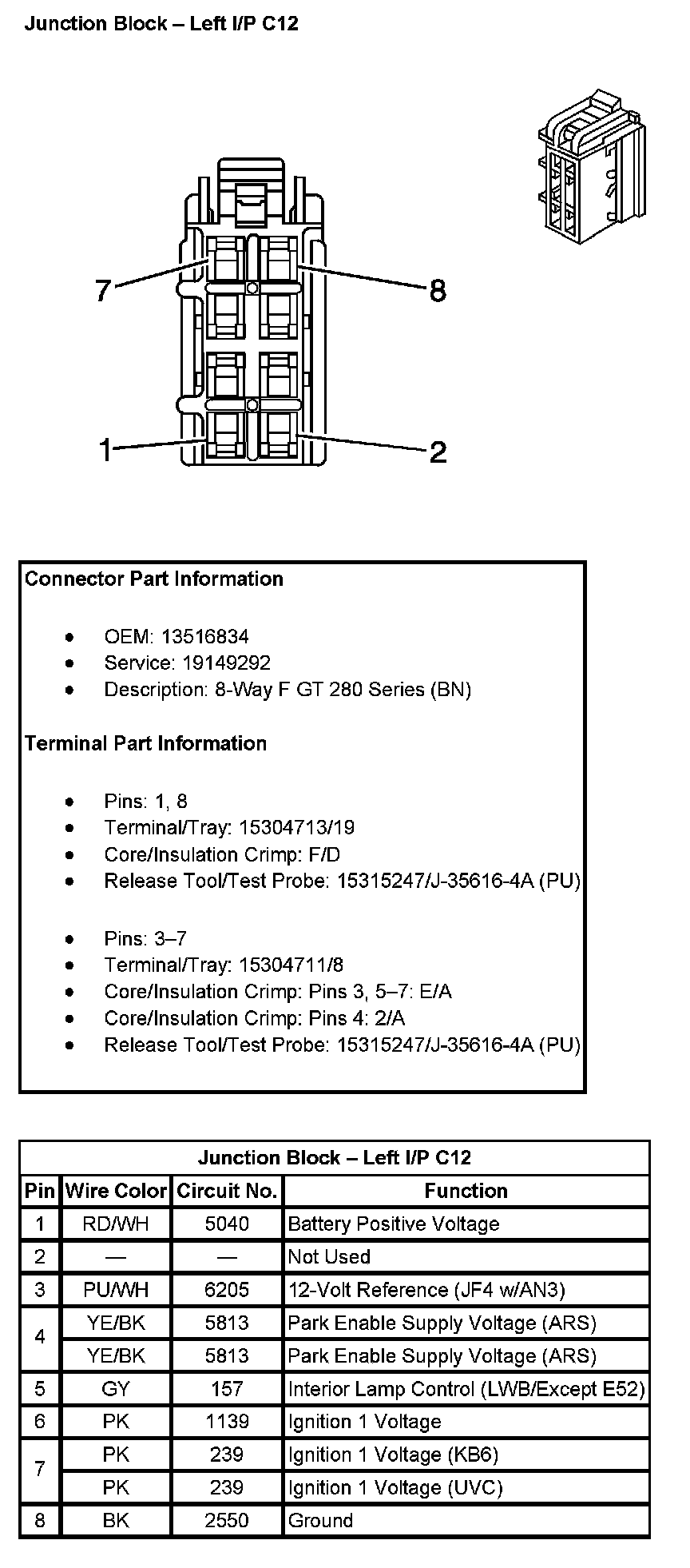 Junction Block - Left I/P C7 (With RPO Code JF4):