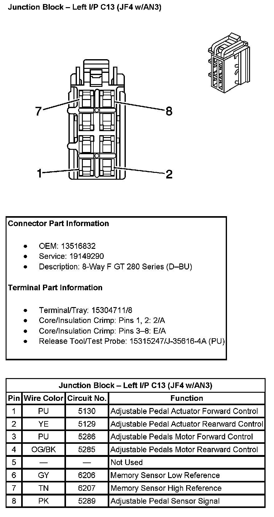 Junction Block - Left I/P C13 (With RPO Codes JF4 And AN3):