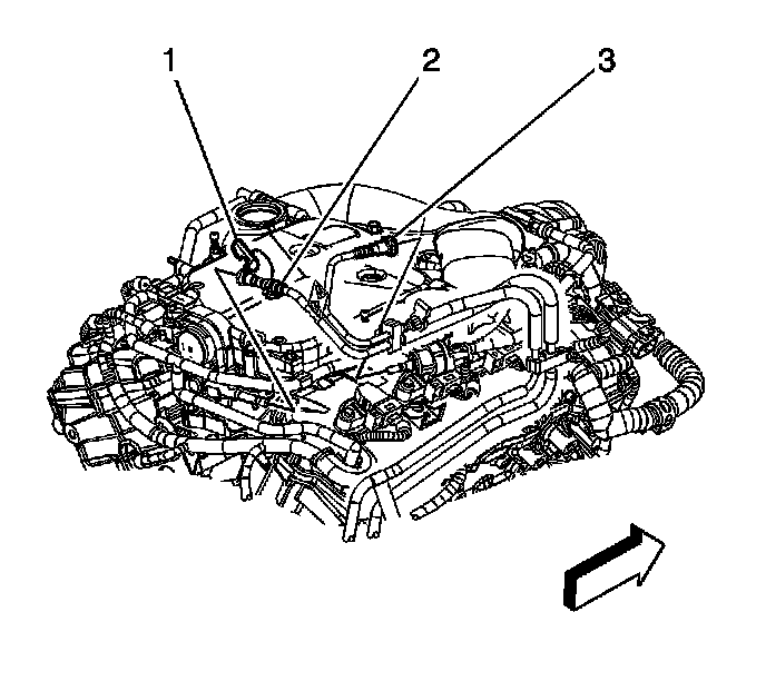 7. Disconnect the purge line (3) from the purge solenoid valve.