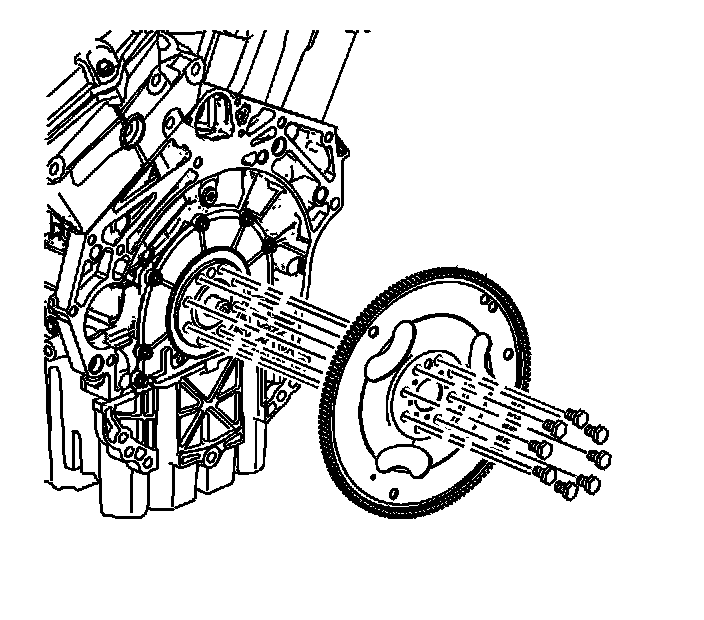 2. Remove the engine flywheel bolts and the flywheel. Refer to Engine Flywheel Removal (Overhaul) .