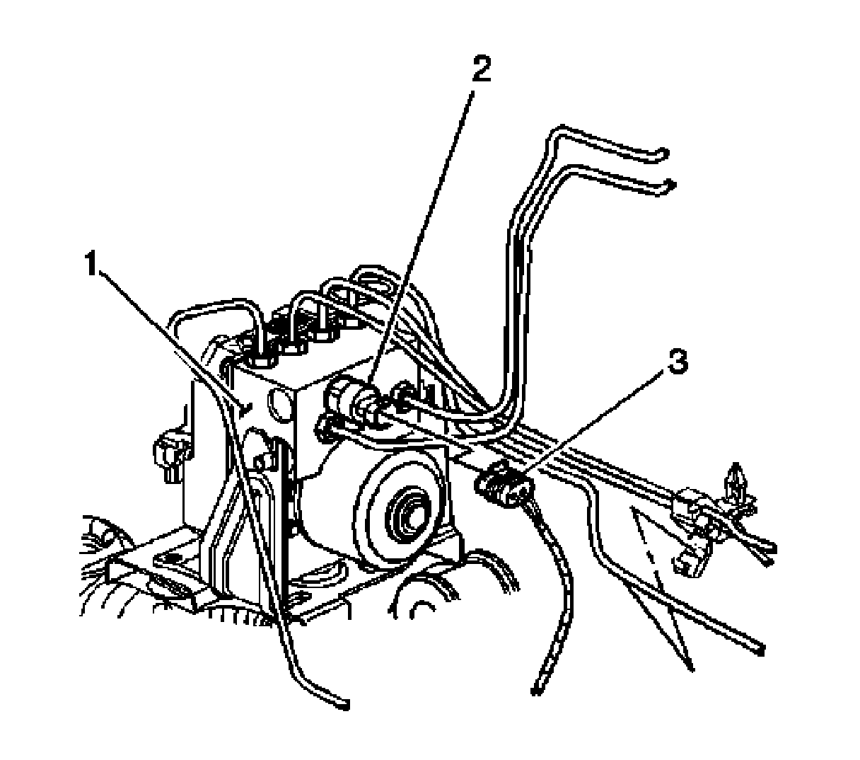 2. Disconnect the brake fluid pressure sensor electrical connector (3) from the brake fluid pressure sensor (2).
