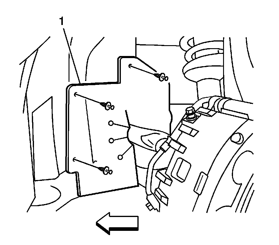 16. Remove the LH front splash shield (1).