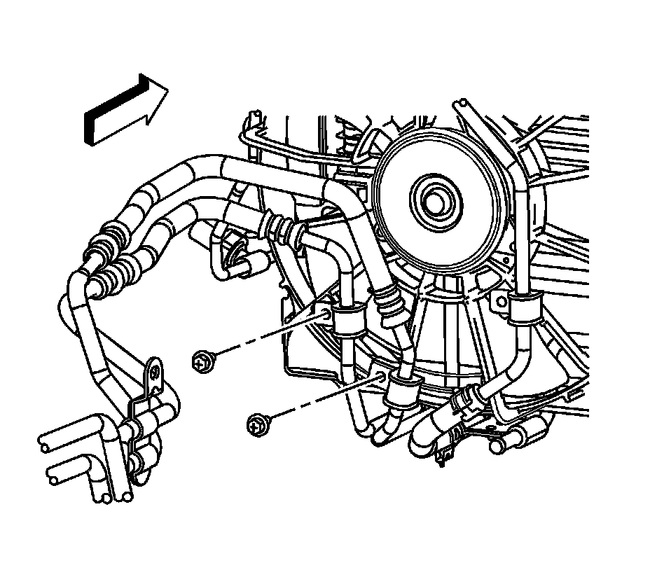 3. Remove the drive belt. Refer to Water Pump and Air Conditioning Compressor and Power Steering Pump Belt Replacement (Water Pump and Air Conditioning Compressor and Power Steering Pump Belt Replacement) .