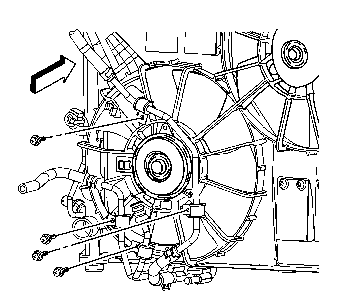 6. Remove the cooling fan shroud to radiator retaining bolts.