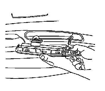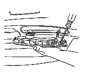 1. Insert a flat-bladed tool under the front edge of the switch assembly to release the retainer from the door trim panel.