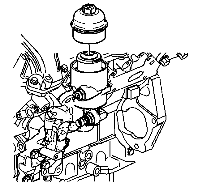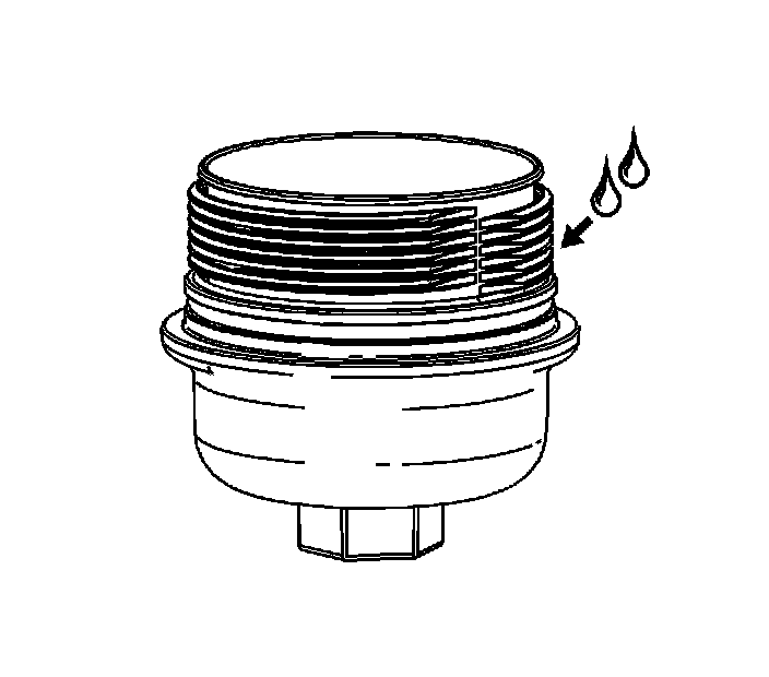 Notice: Lubrication must be applied to the threads of the oil filter cap prior to installation. Failure to lubricate the oil filter cap threads can hinder later removal and cause possible oil filter cap damage.
