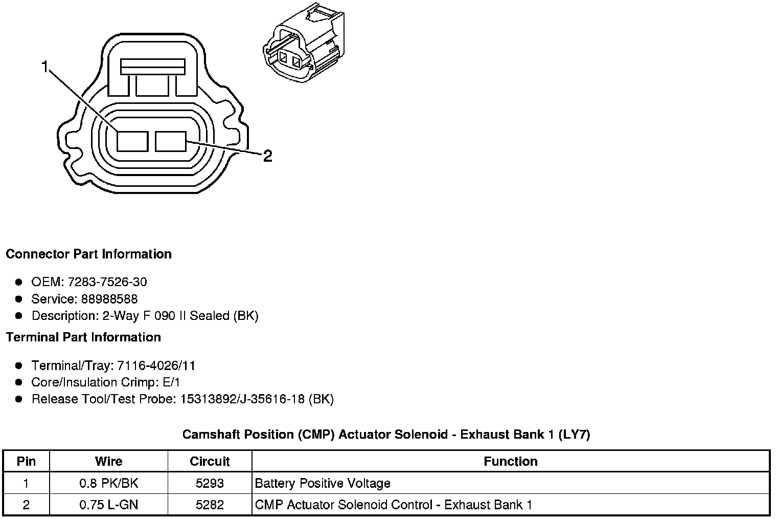 Camshaft Position (CMP) Actuator Solenoid - Exhaust Bank 1 (LY7 - Gas, 6 Cylinder, 3.6L, SFI, V6)
