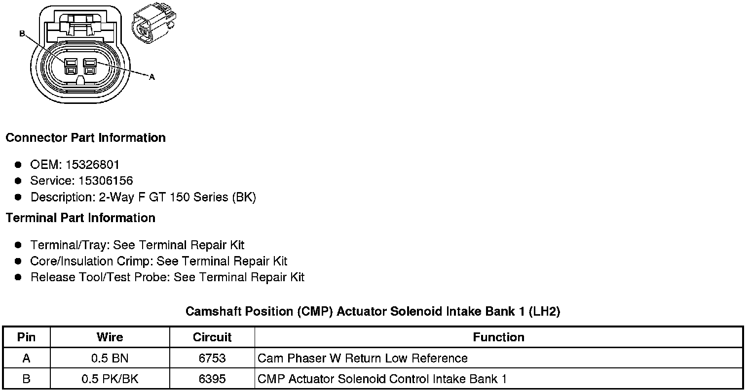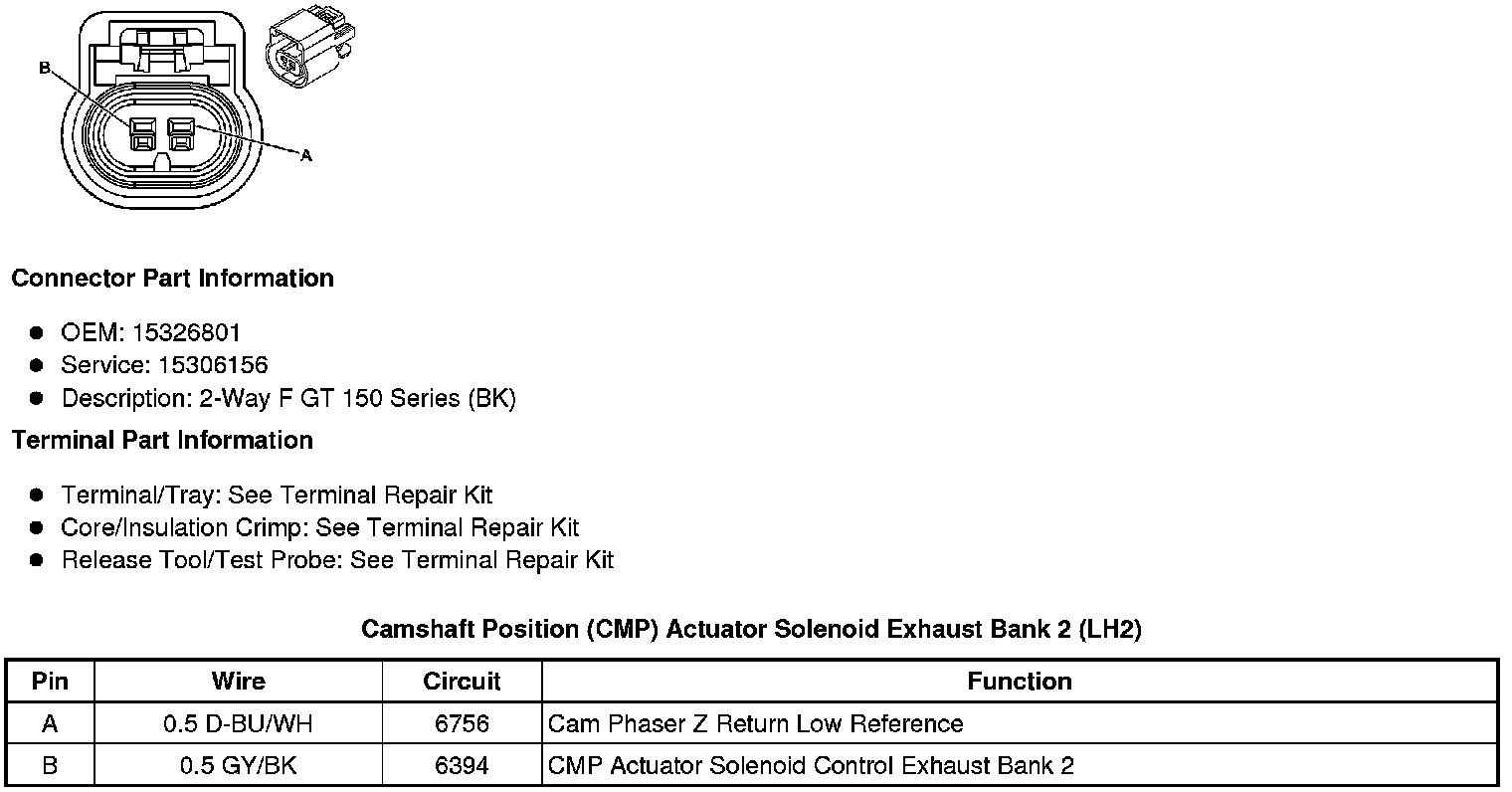Camshaft Position (CMP) Actuator Solenoid Exhaust Bank 1 (LH2 - Gas, 8 Cylinder, 4.6L, SFI, V8, DOHC, HO)
