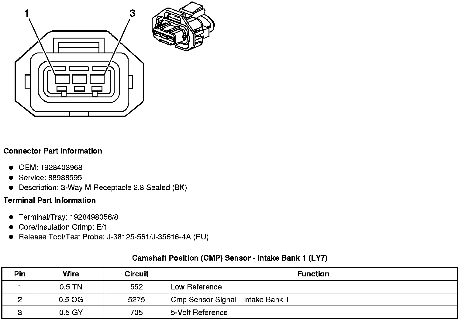 Camshaft Position (CMP) Sensor - Intake Bank 1 (LY7 - Gas, 6 Cylinder, 3.6L, SFI, V6)