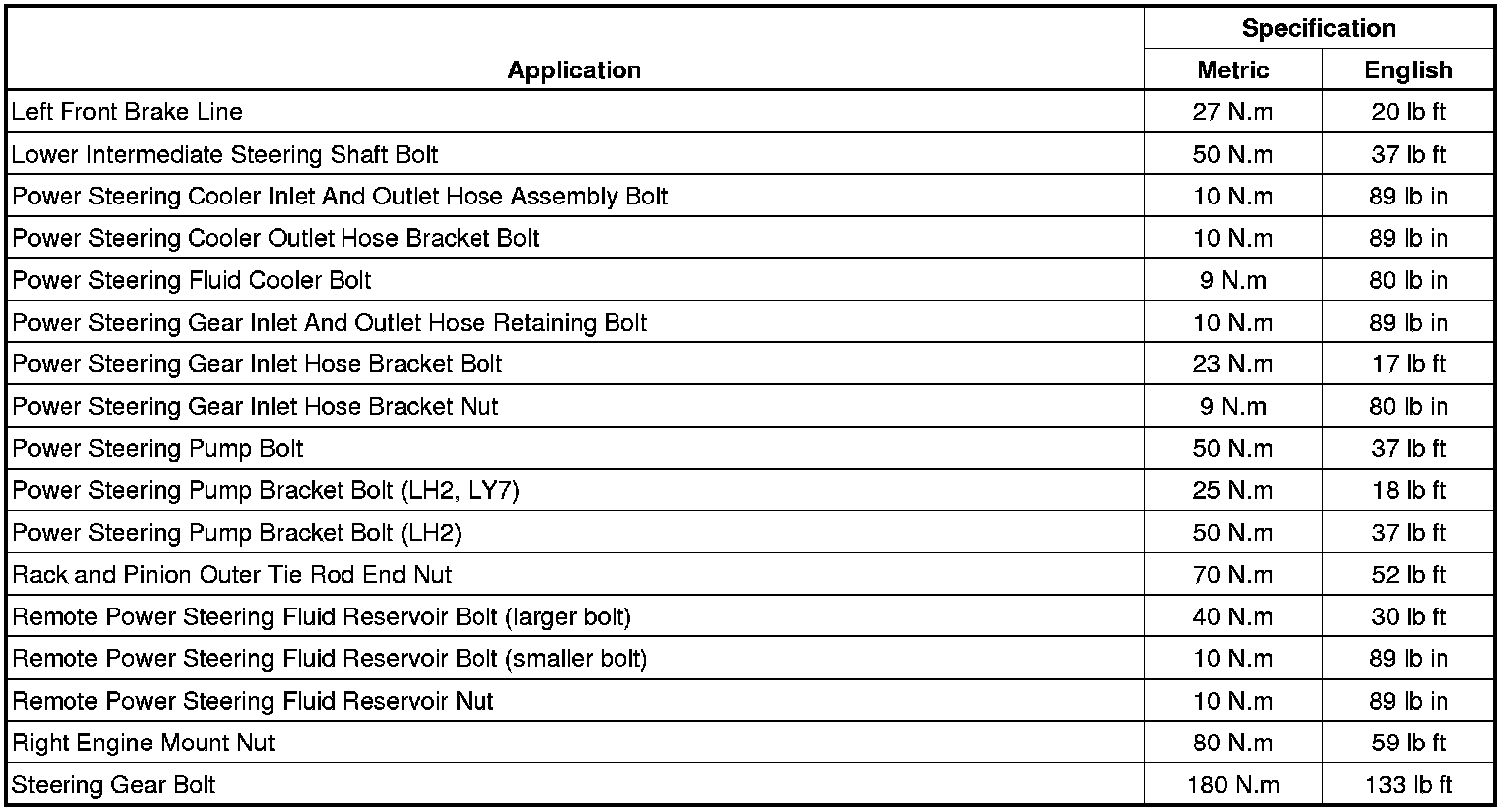 Fastener Tightening Specifications