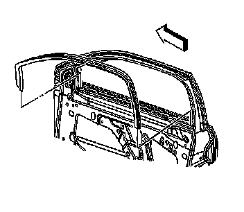 2. Remove the window inner belt sealing strip. Refer to Front Side Door Window Belt Inner Sealing Strip Replacement (Front Side Door Window Belt Inner Sealing Strip Replacement) .