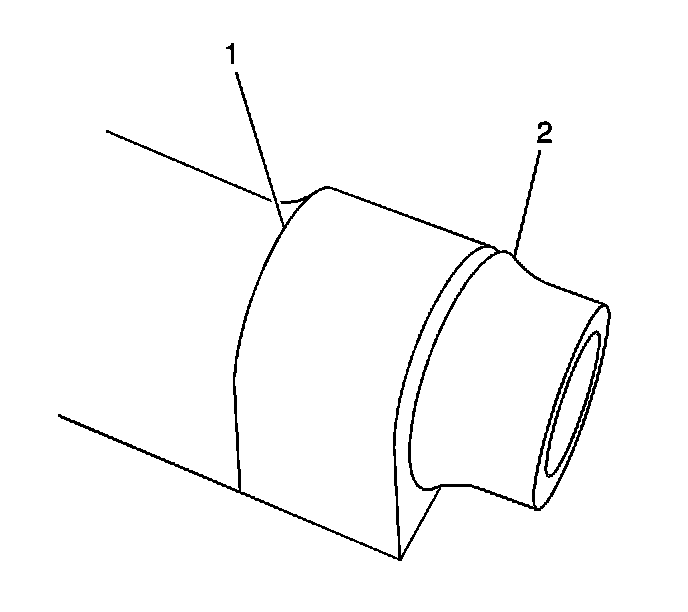 * Ensure that the caliper guide pin boots (2) are fully seated to the caliper boot seal retaining seat (1) of the brake caliper mounting bracket.