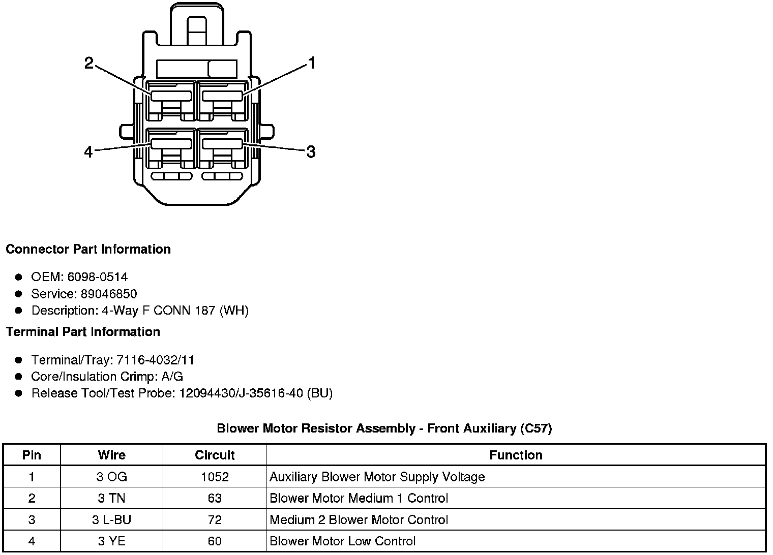 Blower Motor Resistor Assembly - Auxiliary (C57)
