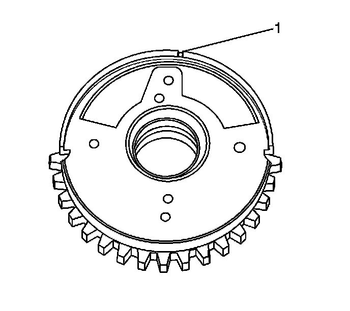 1. The primary timing gear alignment mark (1) is at the top of its position,