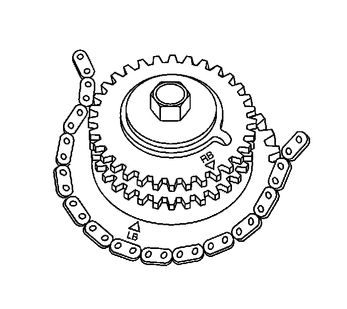 9. Assemble the secondary timing chain to the intermediate sprocket aligning the sprocket LB timing mark to the timing chain black link.