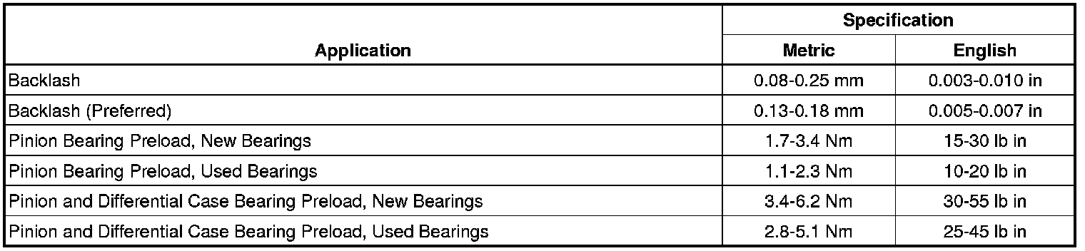 Axle Preload and Backlash Specifications