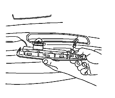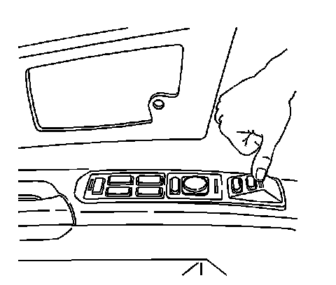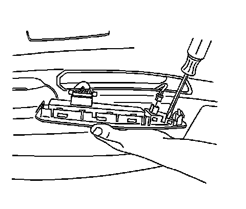 1. Insert a flat-bladed tool under the front edge of the switch assembly to release the retainer from the door trim panel.