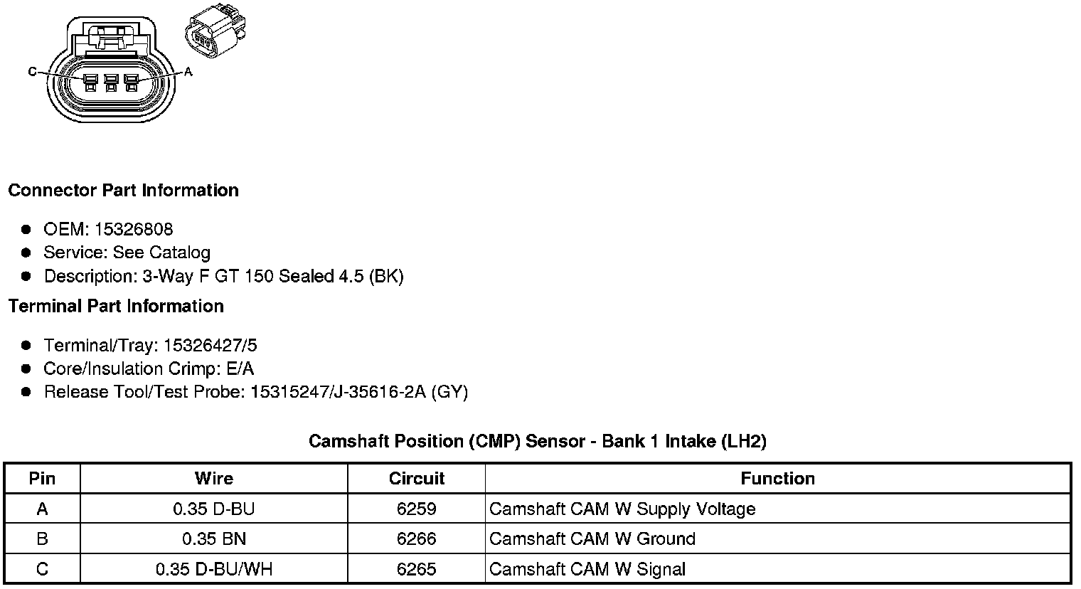Camshaft Position (CMP) Sensor - Bank 1 Intake (LH2)