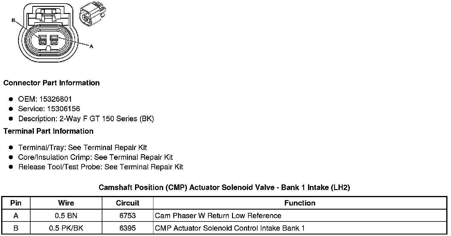 Camshaft Position (CMP) Actuator Solenoid Valve - Bank 1 Intake (LH2)