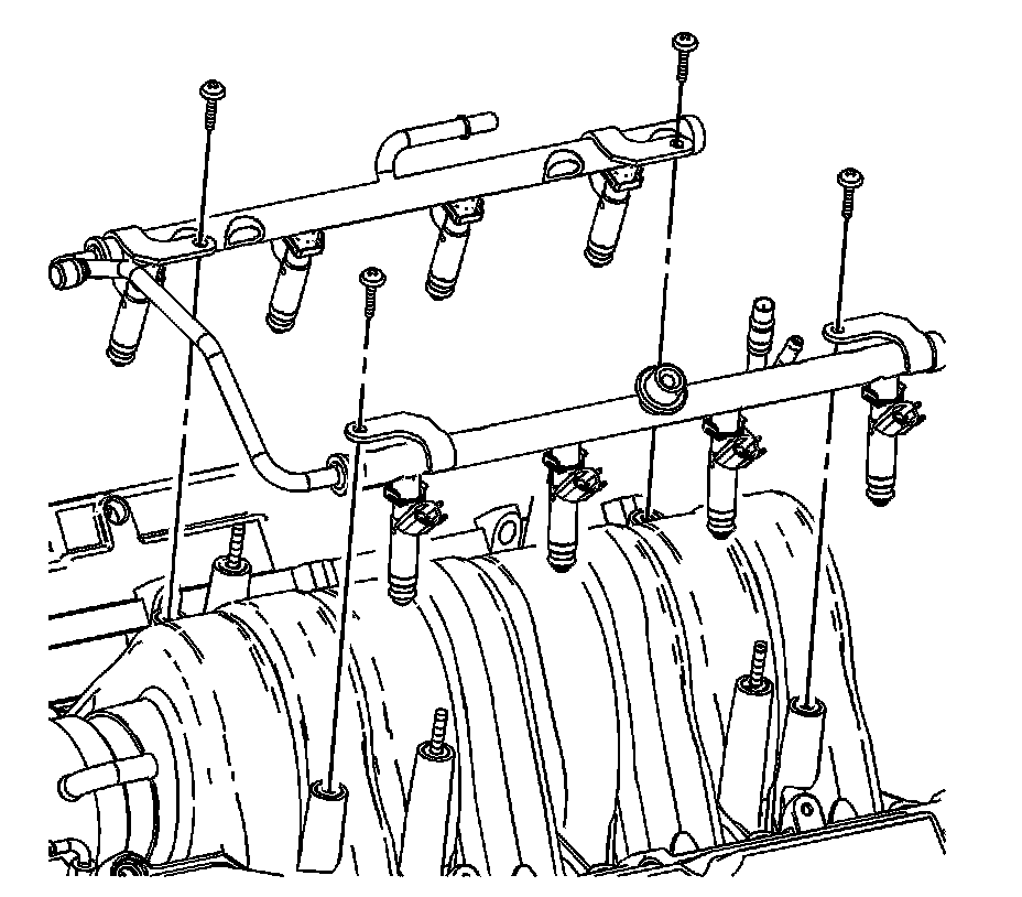 14. Remove the fasteners attaching the fuel rail to the intake manifold.