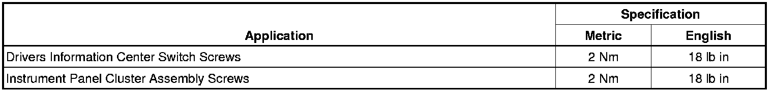 Instrument Panel, Gauges and Warning Indicators: Specifications