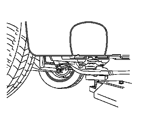 Note: The jack stands must not contact the rocker panels, the floor pan, or the stone guard moldings. Remove the jacking covers from the rocker panels if necessary.