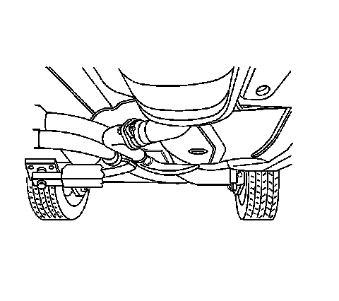 Note: The floor jack pad must not contact the rocker panels, the floor pan, or the stone guard moldings. Remove the jacking covers from the rocker panels if necessary.