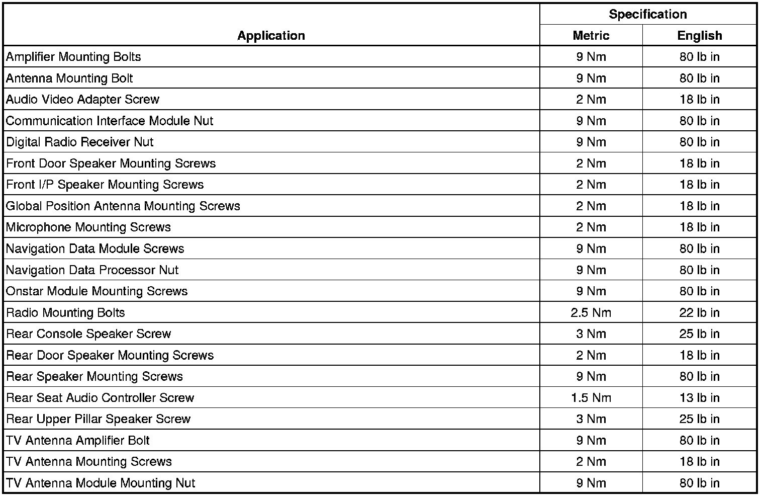 Fastener Tightening Specifications