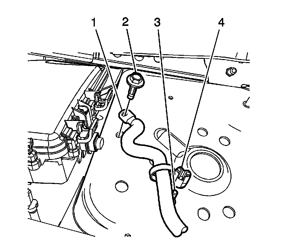 3. Disconnect the cable retaining clip (4) from the stud (3) on the shock tower.