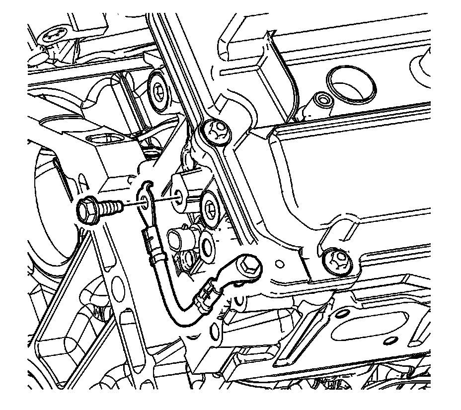 2. Remove the bolts securing the left side ground strap to the cam cover and the engine block.