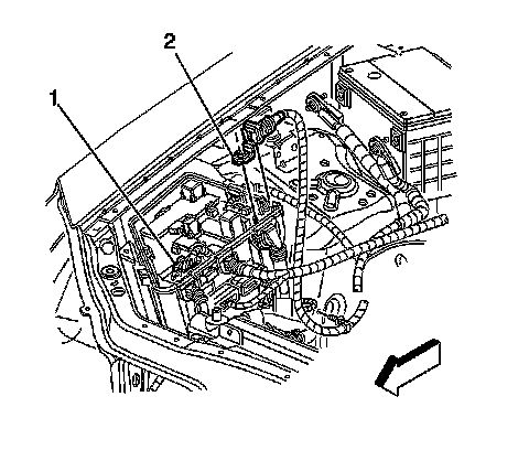 9. Remove the fasteners (1, 2) securing the electrical center (3) to vehicle.