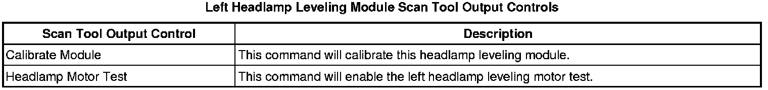 Headlamp Leveling Control Module Scan Tool Information (Left)