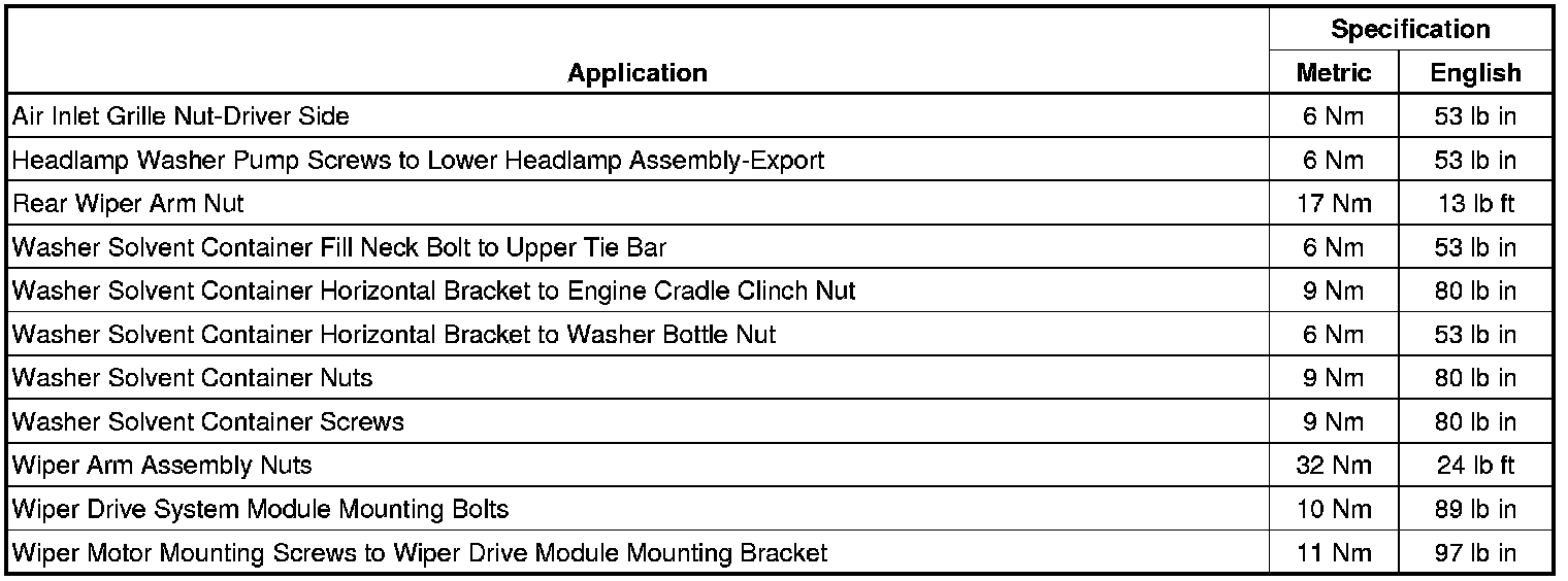 Wiper and Washer Systems: Specifications