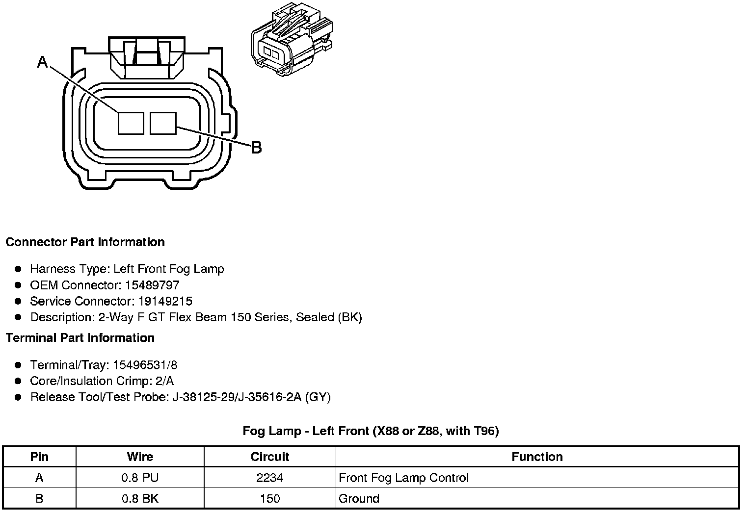 Fog Lamp - Left Front (X88 or Z88, with T96)