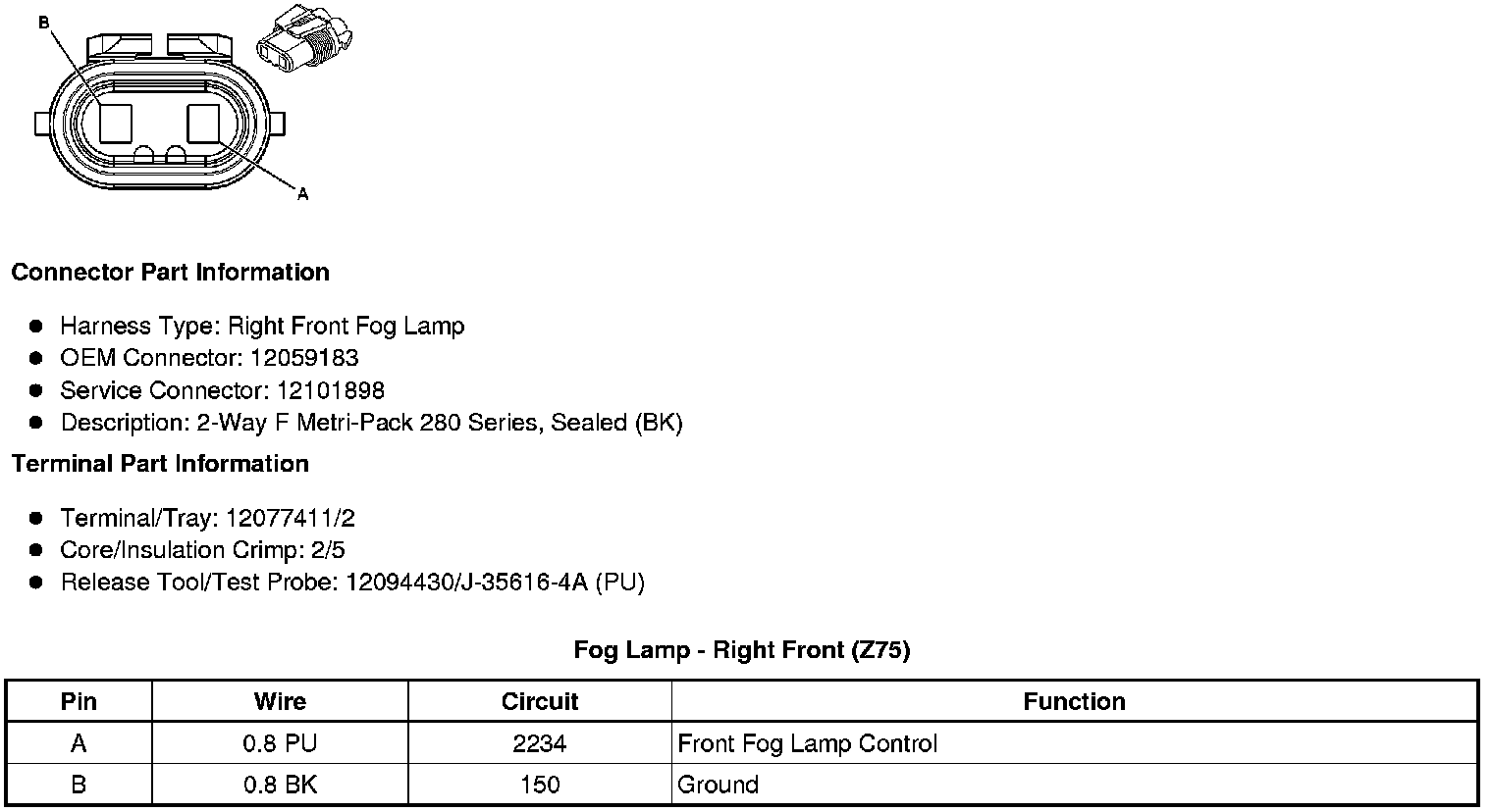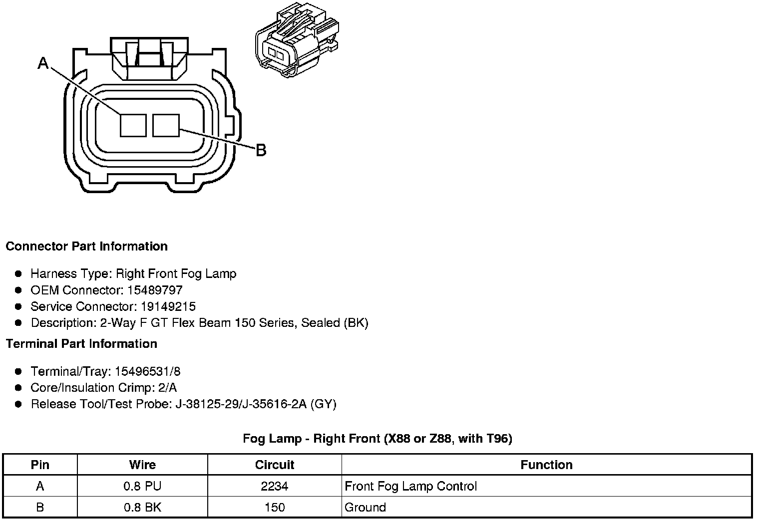 Fog Lamp - Right Front (X88 or Z88, with T96)