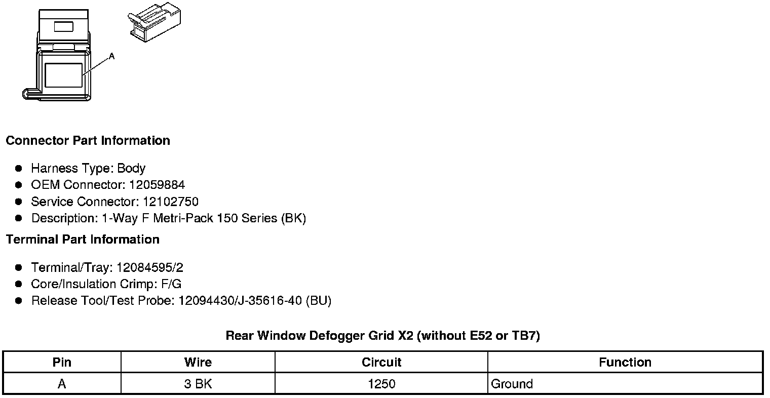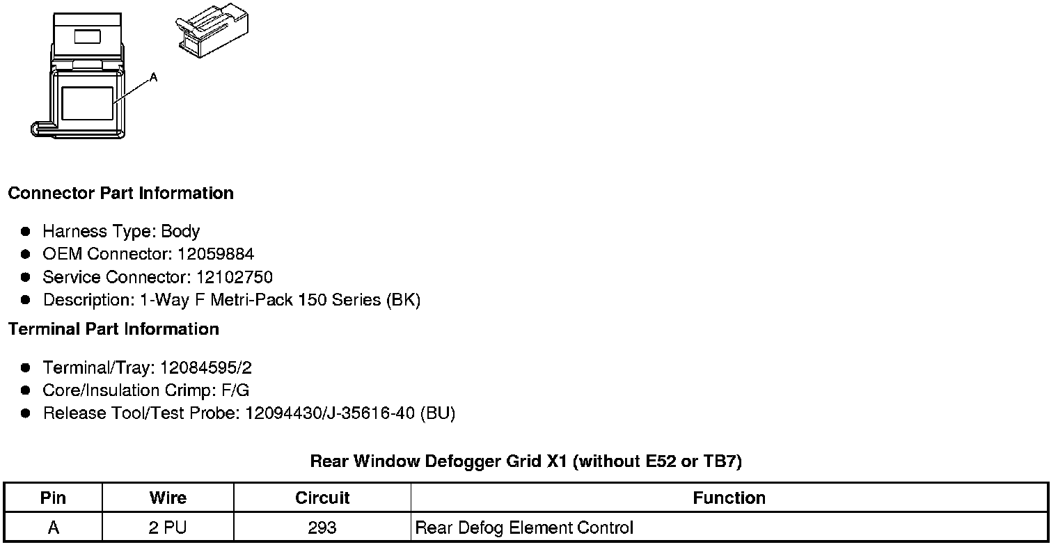 Rear Window Defogger Grid X1 (without E52 or TB7)