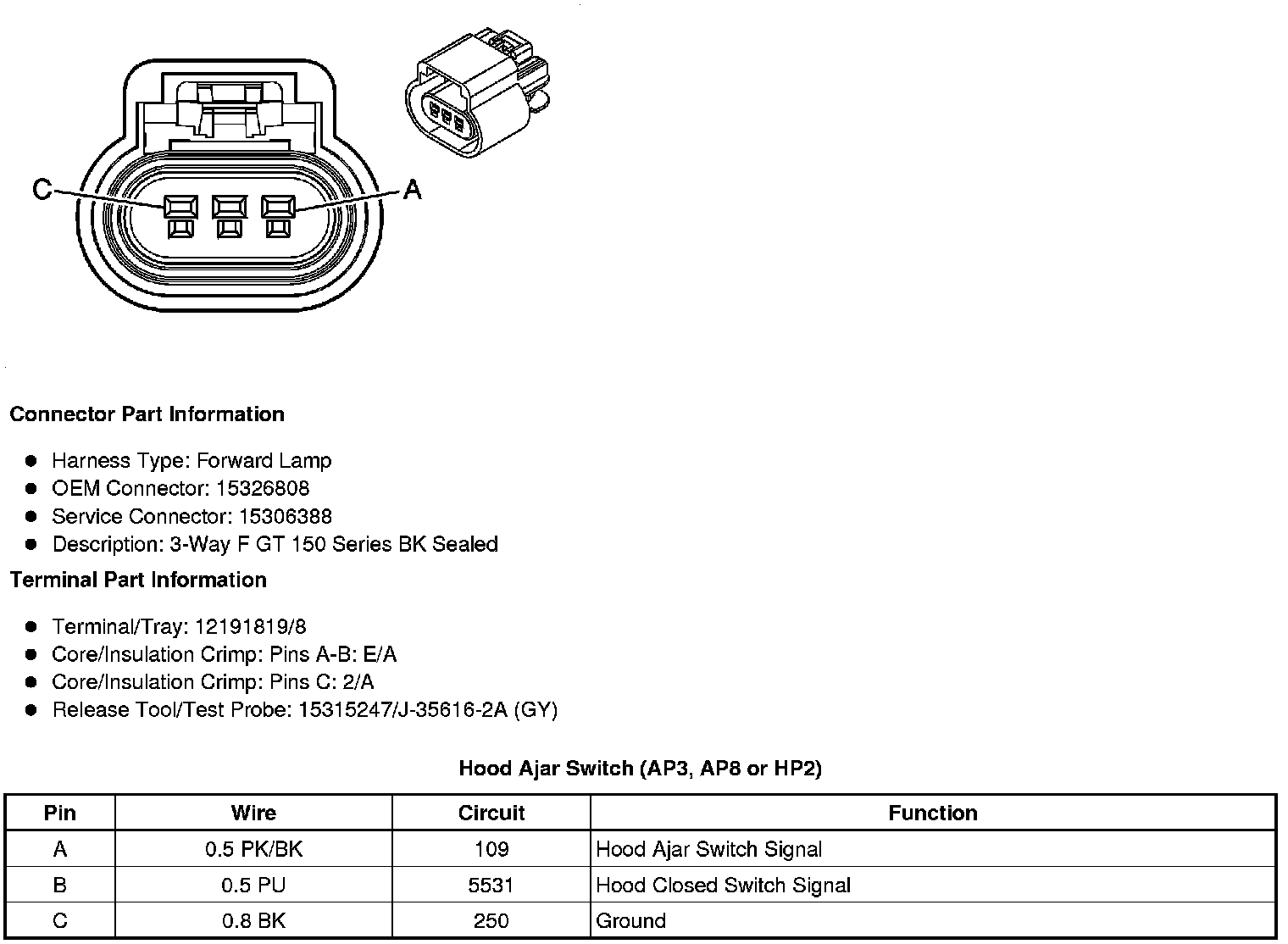 Hood Ajar Switch (AP3, AP8 or HP2)