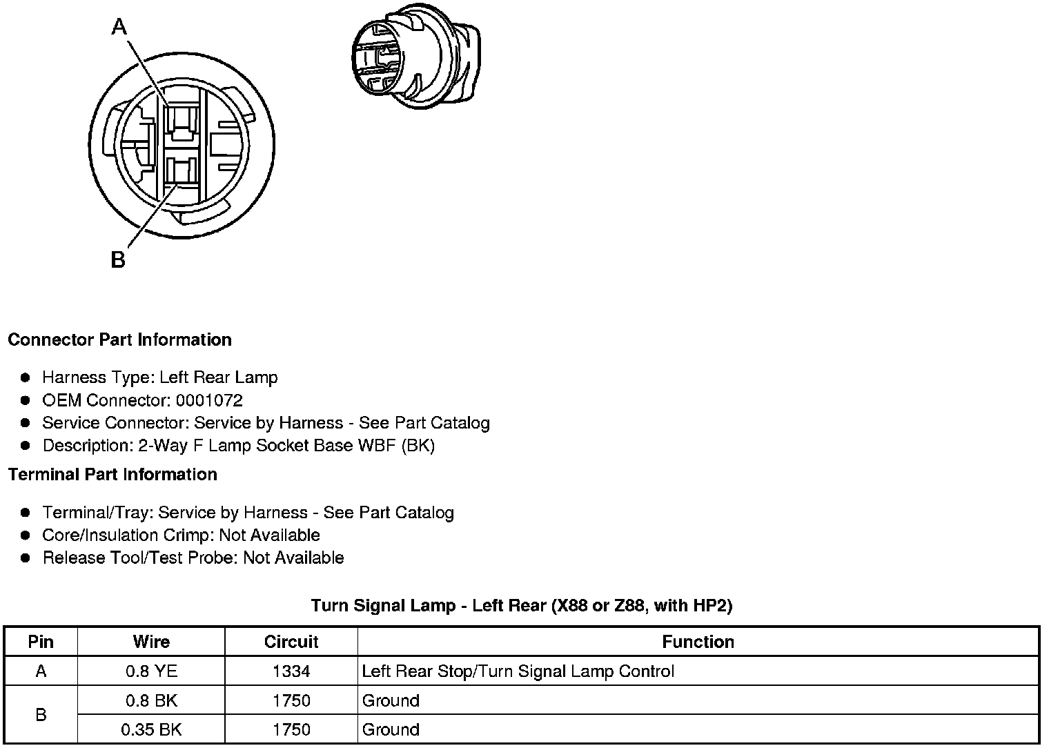 Turn Signal Lamp - Left Rear (X88 or Z88, with HP2)