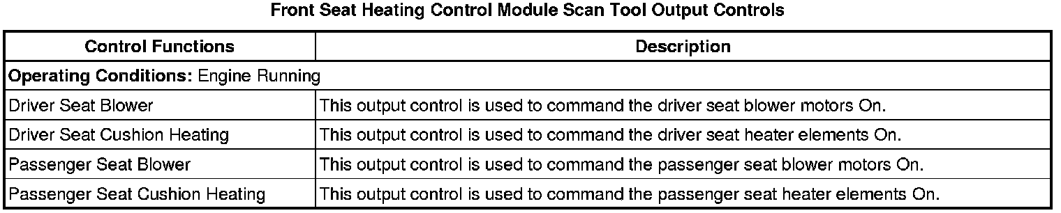 Driver Seat and Passenger Seat Heater Control Module Scan Tool Information