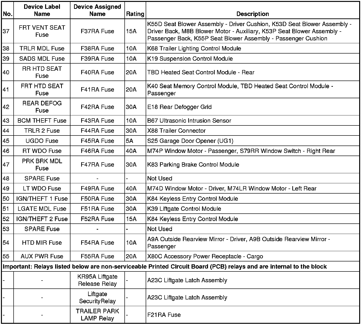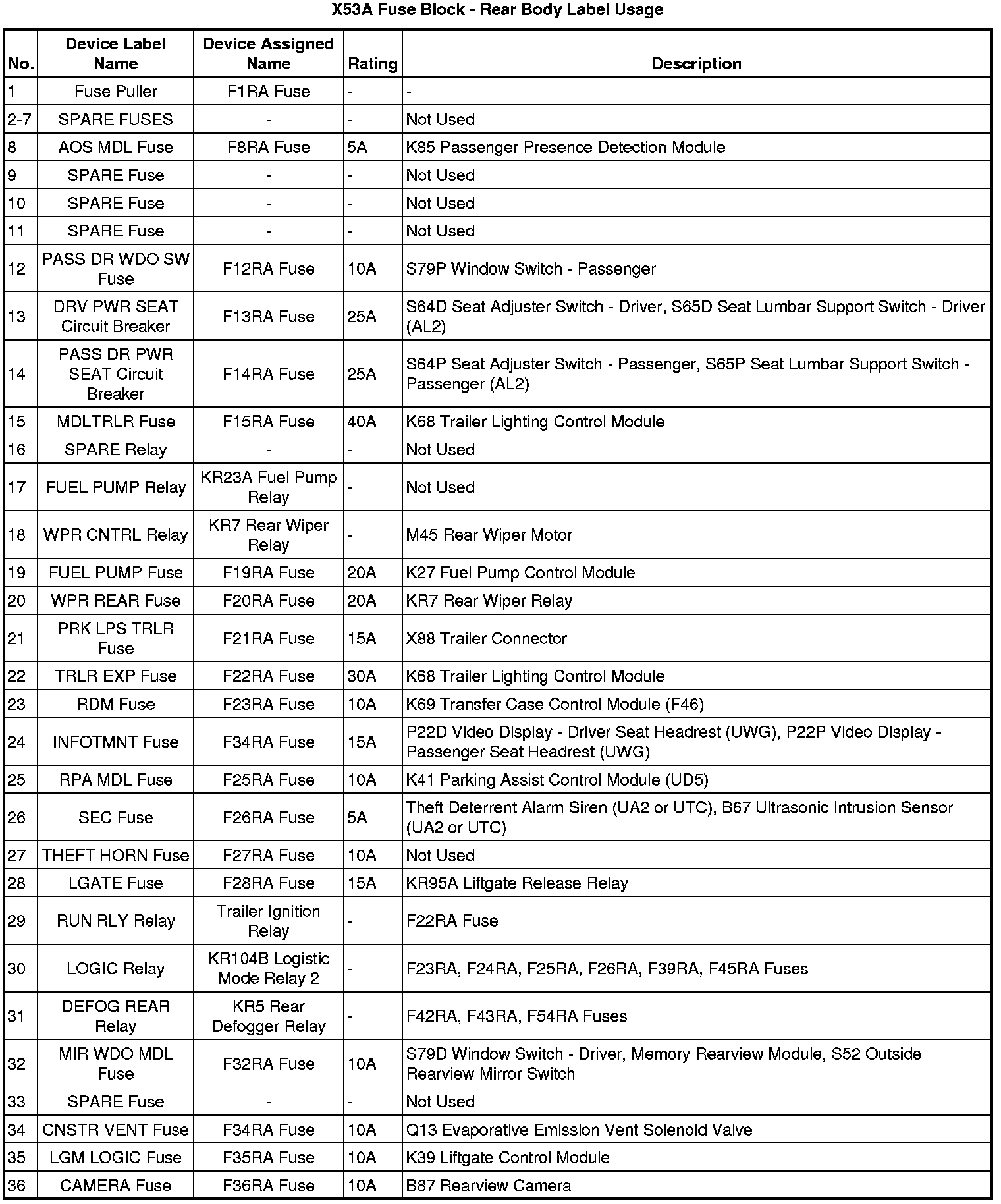 X53A Fuse Block - Rear Body Label