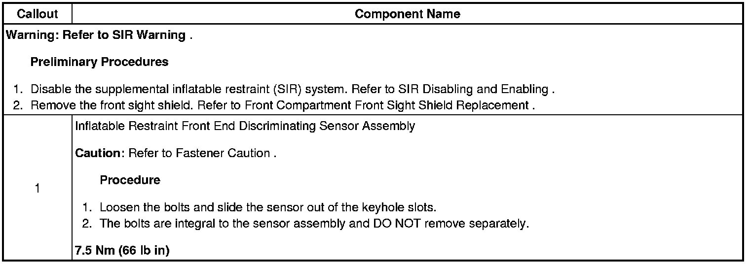 Front End Inflatable Restraint Discriminating Sensor Replacement