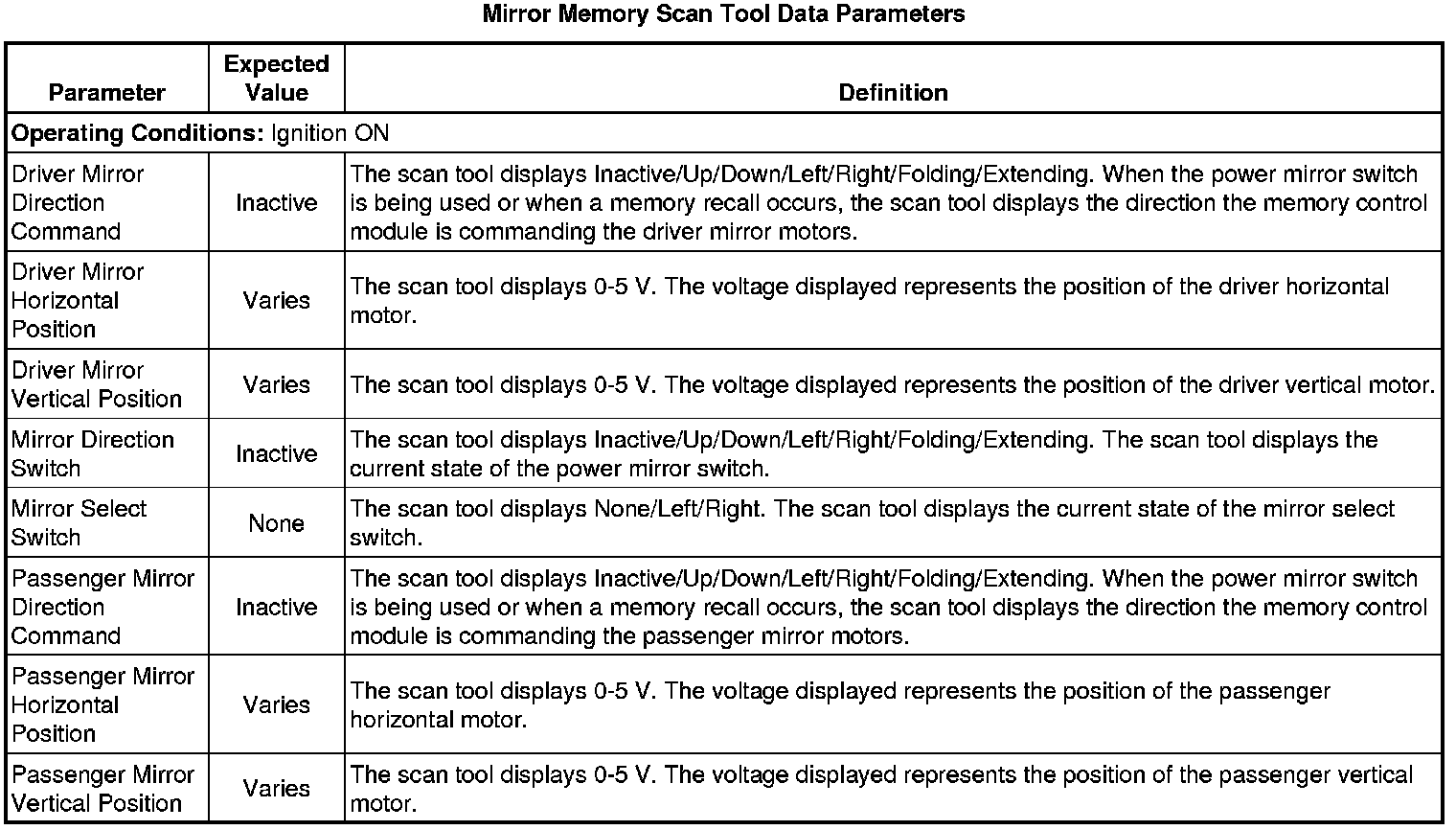 Driver Seat Adjuster Memory Module Scan Tool Information