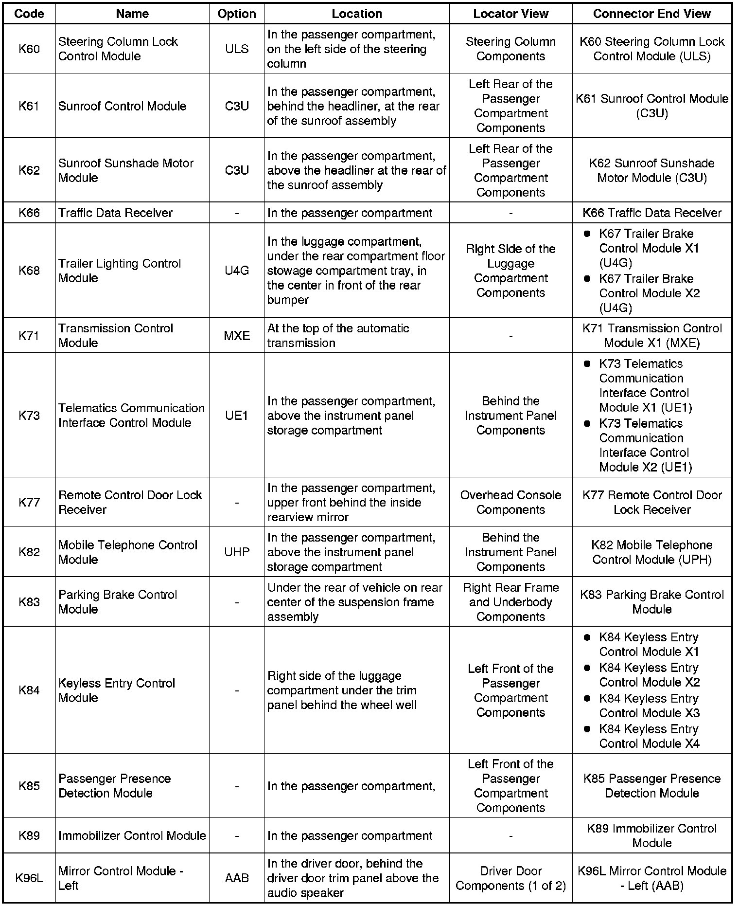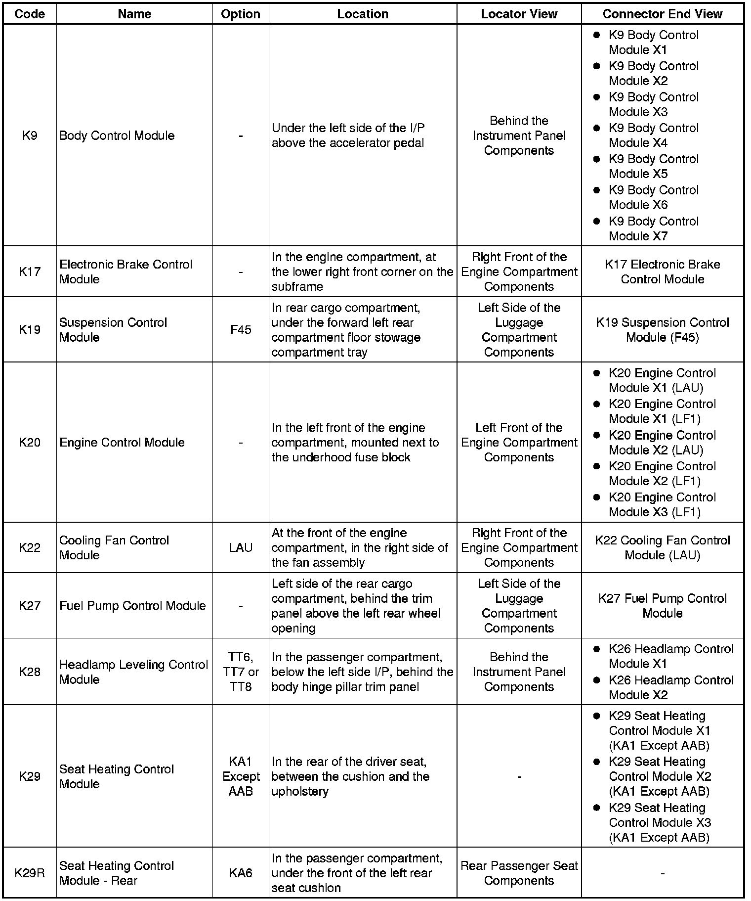 K6 - K9:
