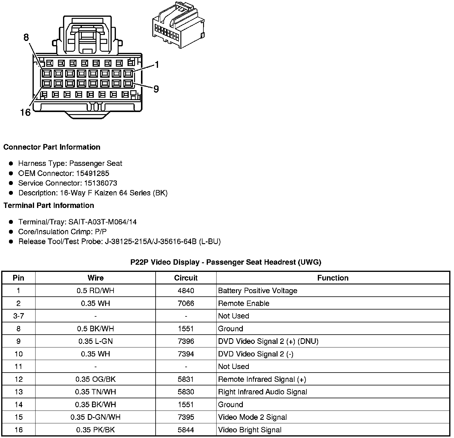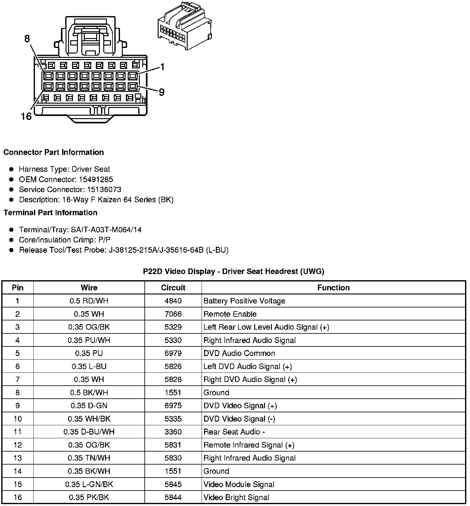 P22D Video Display - Driver Seat Headrest (UWG)