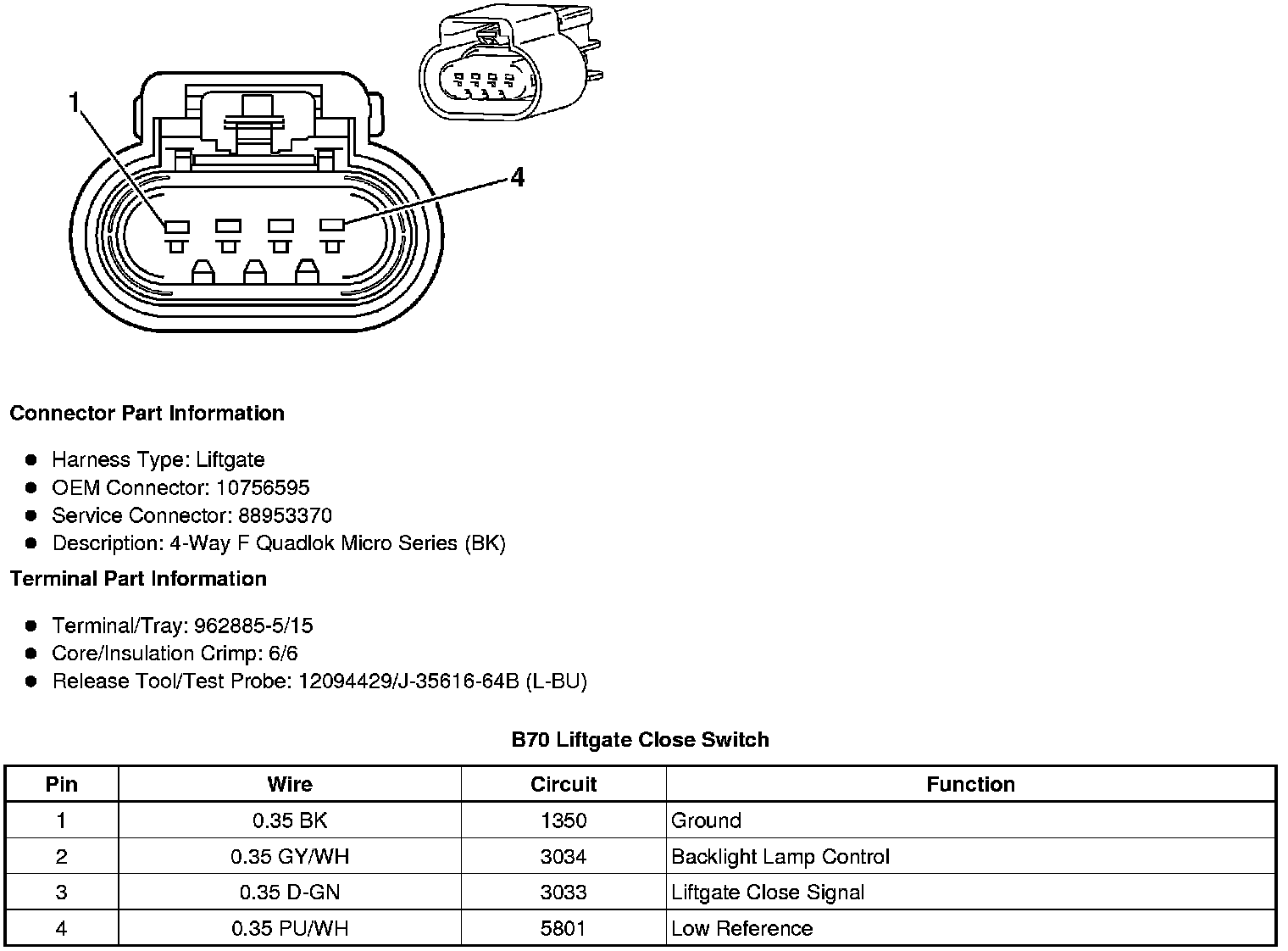 B70 Liftgate Close Switch