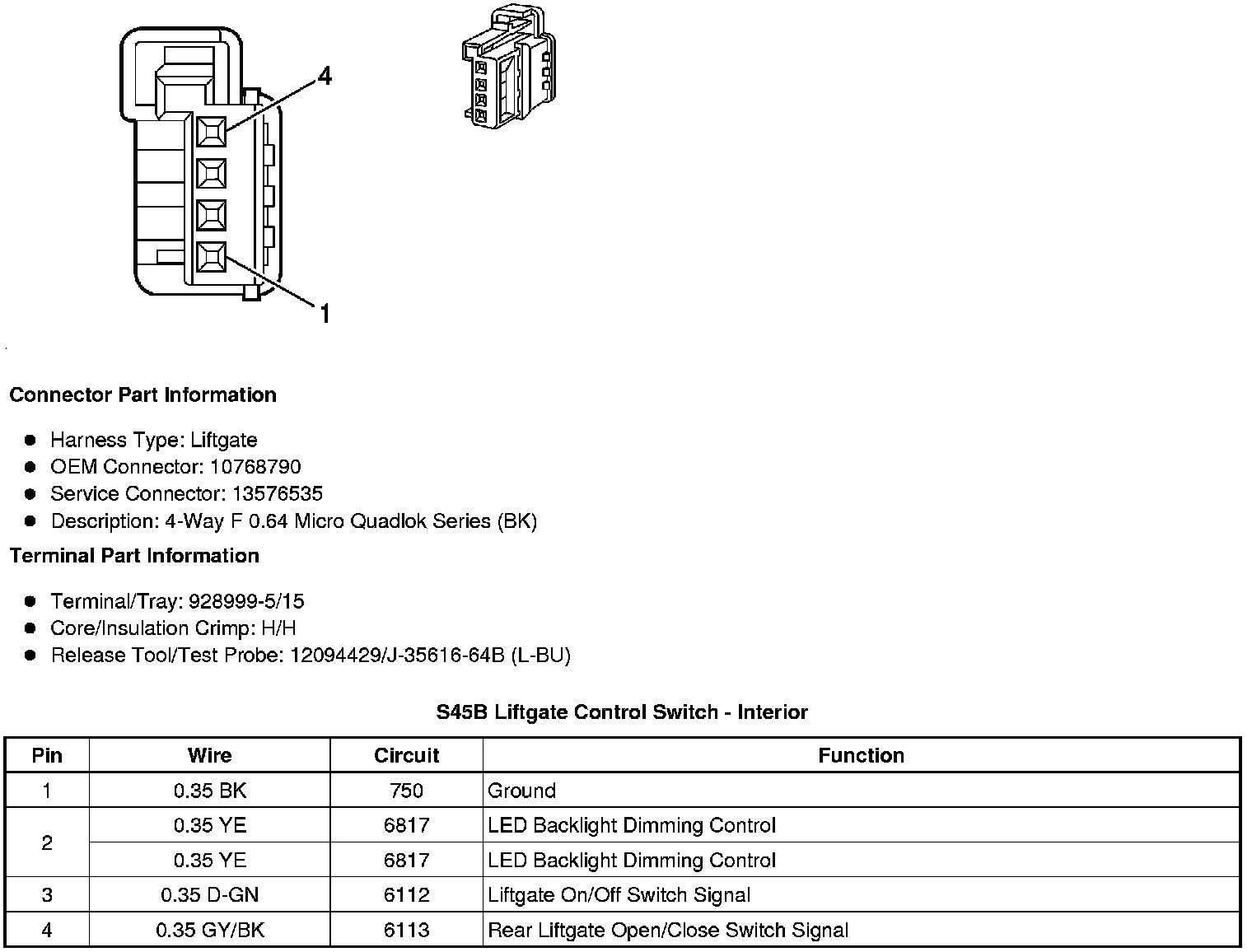 S45B Liftgate Control Switch - Interior