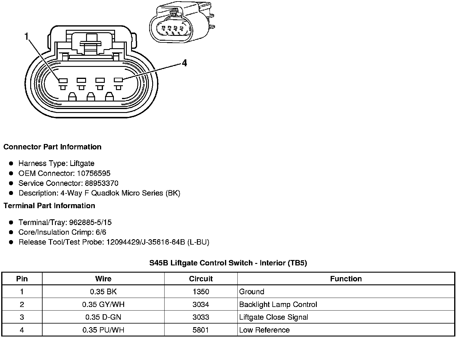 S45B Liftgate Control Switch - Interior (TB5)