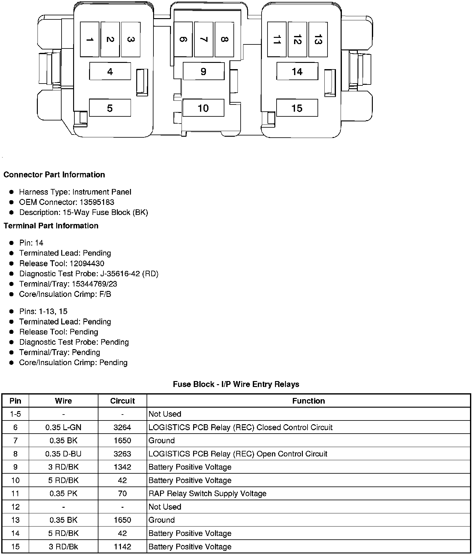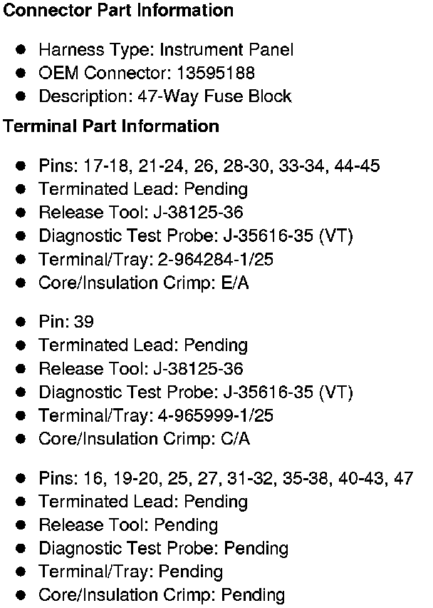 Fuse Block - I/P Bottom View Fuses