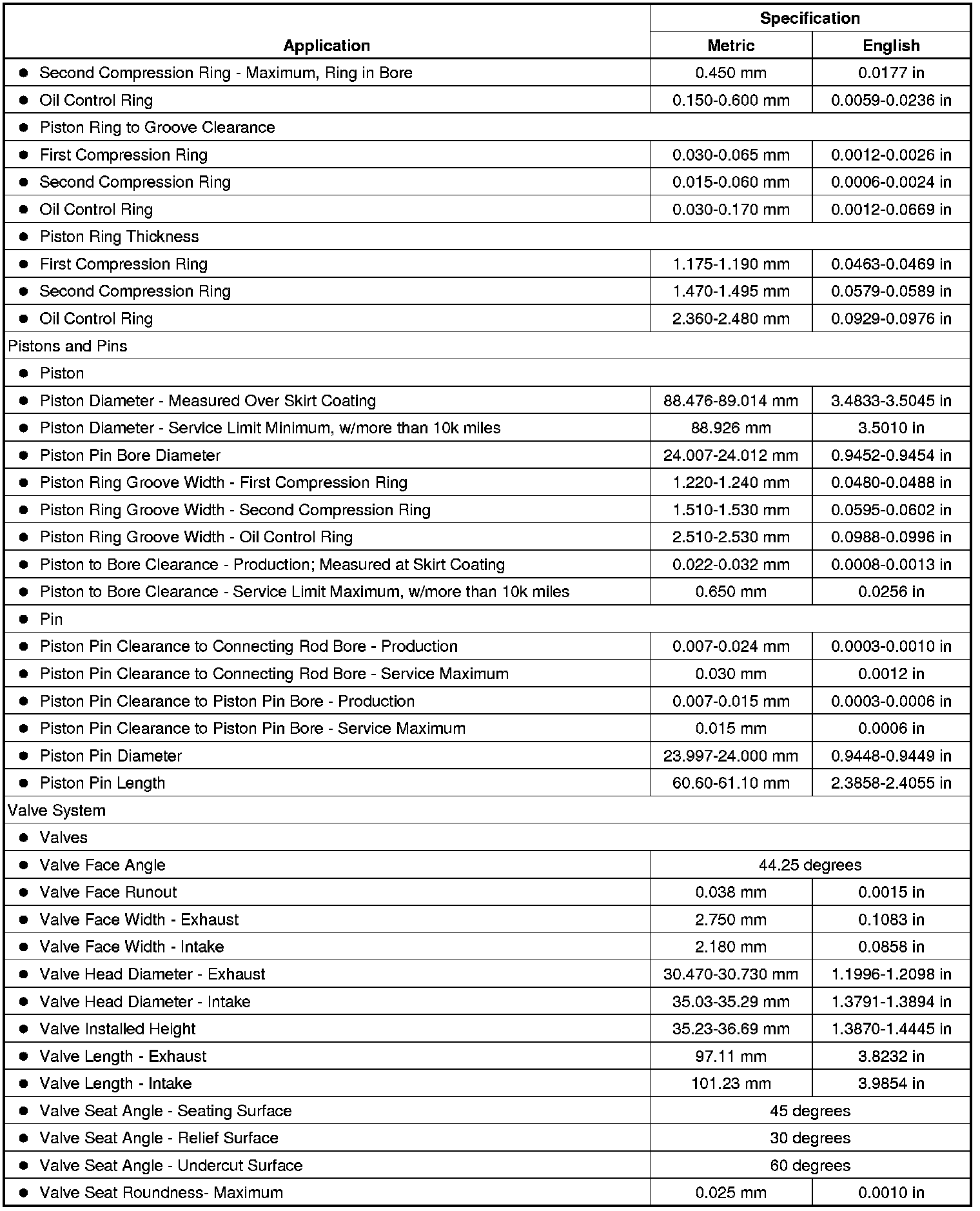 Engine Mechanical Specifications